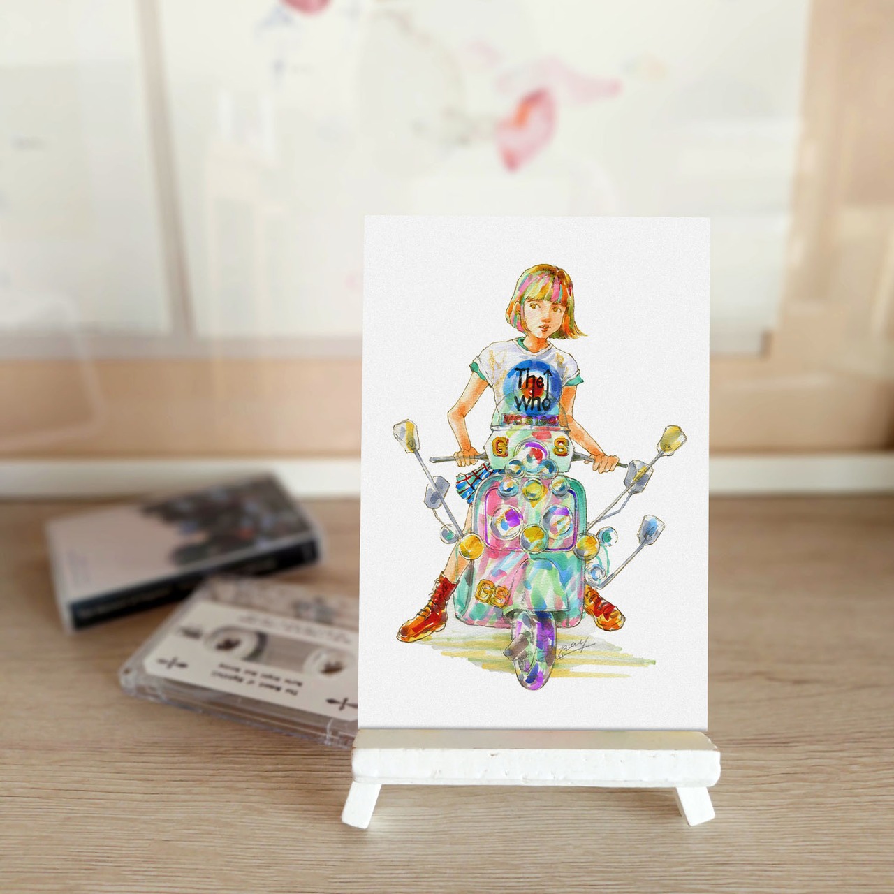 ポストカード ベスパに乗ったモッズな女の子