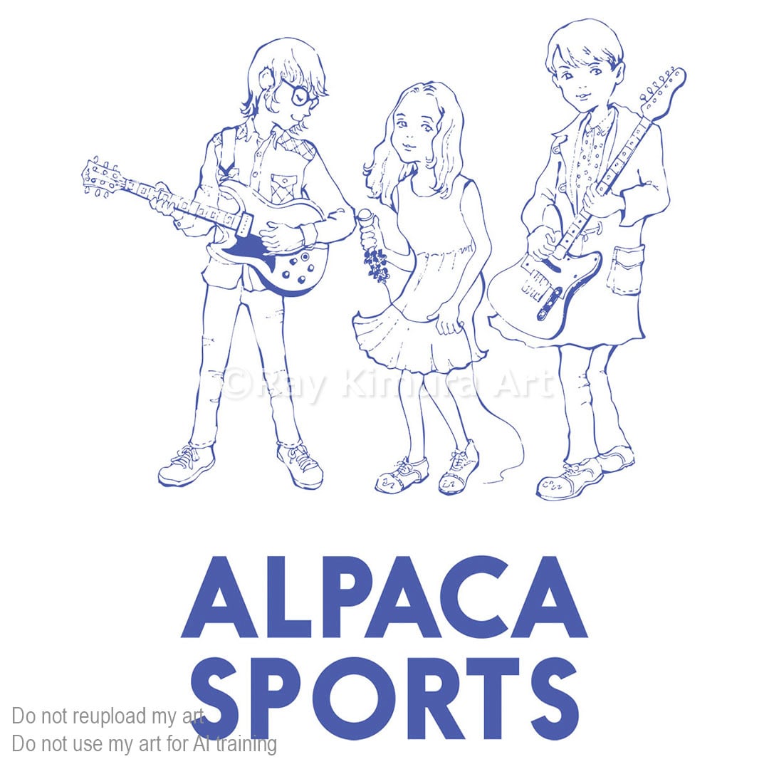 スウェーデンのポップバンド、ALPACA SPORTS。バンド公式、メンバーの線画ポートレート。