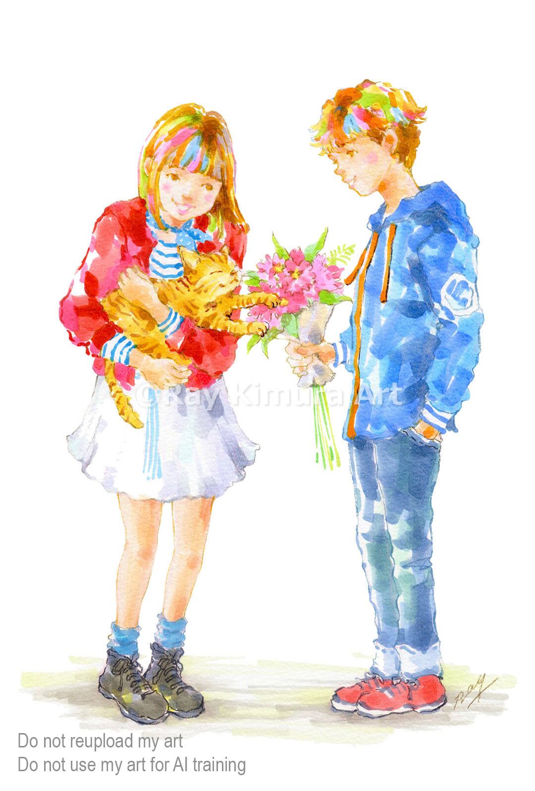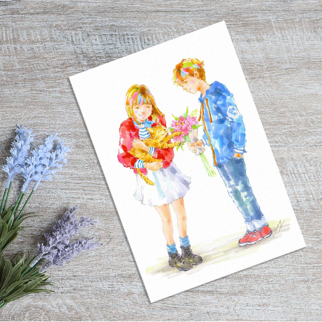 ポストカード トラ猫とカップル