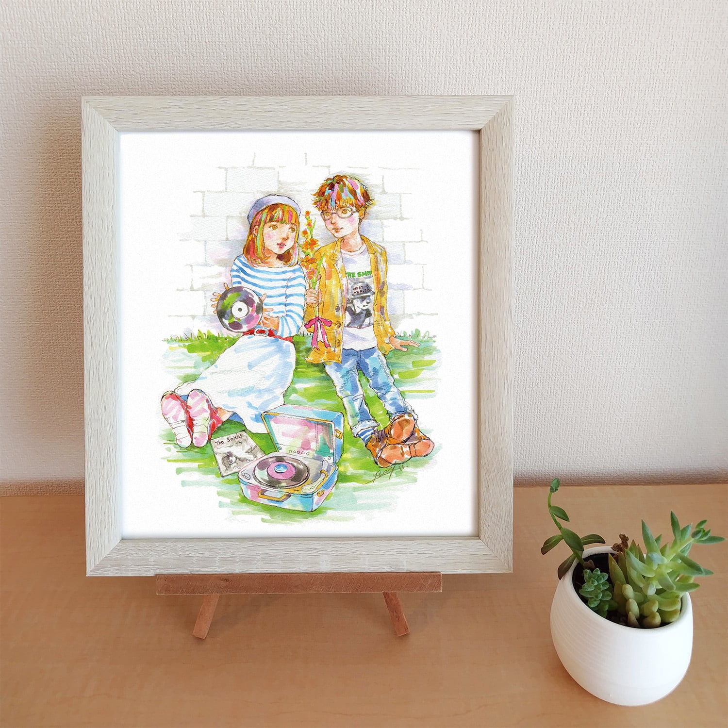 手描きのオリジナルイラストを、上質紙に高画質でプリントしたアート作品。