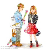 男の子も相棒のバニーもお揃いの服を着て、お揃いの花束を女の子にプレゼント。