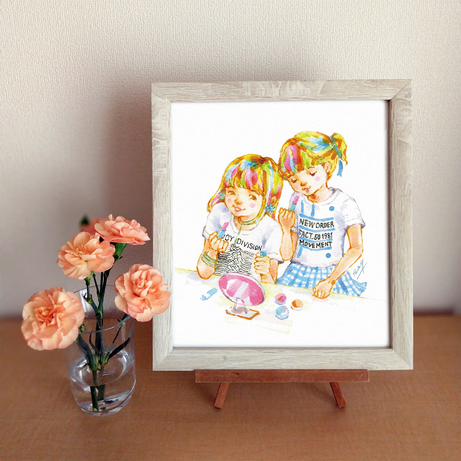 アートプリント なかよし姉妹のはじめてのメイク