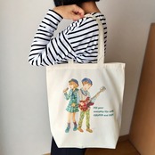 Ray Kimuraのアイコンでもある、赤いギターを弾く男の子とブリットなファッションの女の子のイラストに「毎日をPOPにカラフルに」のメッセージを添えた、あたたかなタッチのイラストが引き立つオリジナルトートバッグ新作。