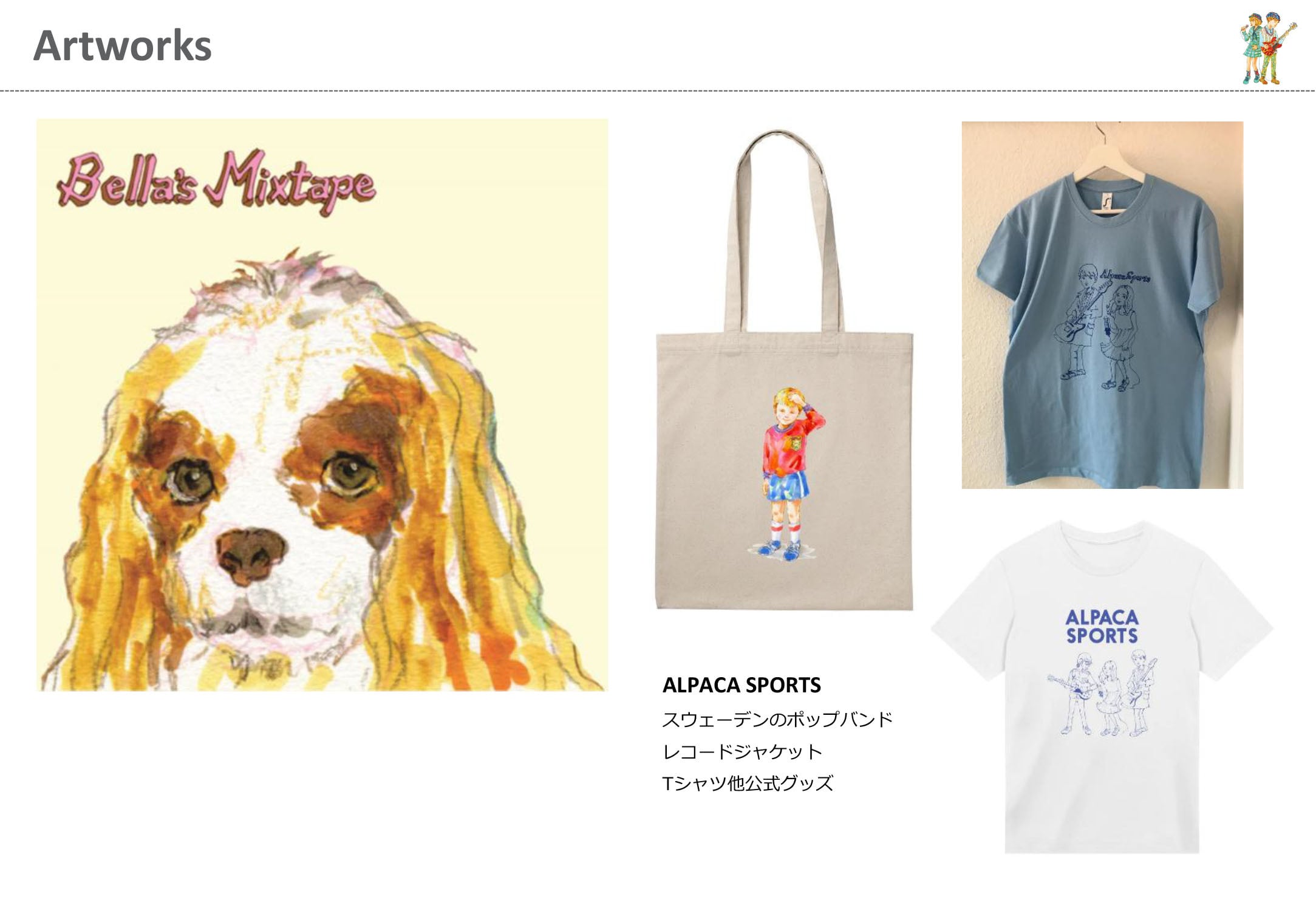 カラフルな水彩画タッチにどこか懐かしさを覚える手描きイラストが特徴2012年よりスウェディッシュ・ポップ・バンドALPACA SPORTSのレコード全作のアートワークを担当海外の書籍表紙バンドのツアーポスターなどにも作品が起用されています